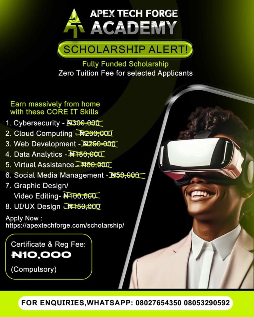 We’re excited to announce a limited-time opportunity for aspiring tech enthusiasts! 🌟 Our generous sponsors, expert tutors, and dedicated team at Apex Tech Forge are offering a chance to kickstart your tech journey with a 20 Million Worth of Scholarship that can cover up to 90%-99% of your training costs! 💸
